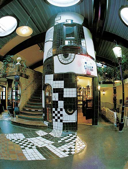 A különleges építészetét gyakran hasonlították Antoni Gaudi munkásságához, hiszen e másik tervező is gyakran alkalmazott mozaikokat és biomorph formákat a házainak megtervezése során. A híressé vált Hundertwasser-ház mellett számos más, hasonló vonásokkal rendelkező, természet közeli, meghökkentő építmény őrzi Friedenreich Hundertwasser különleges munkásságának emlékét. A Hundertwasser-ház nem csak kívülről nyújt izgalmas látványt, hanem belülről is. A lakások falait ugyanis, kerámiák, díszes csempék, valamint ezüstös és különböző színekben pompázó ezüstlapok borítják. A hullámzó vonalvezetés, a rengeteg fa és bokor igazán látványossá teszi ezt a különleges épületet.