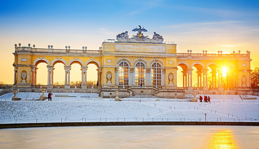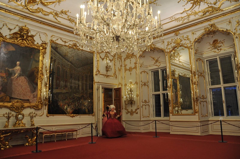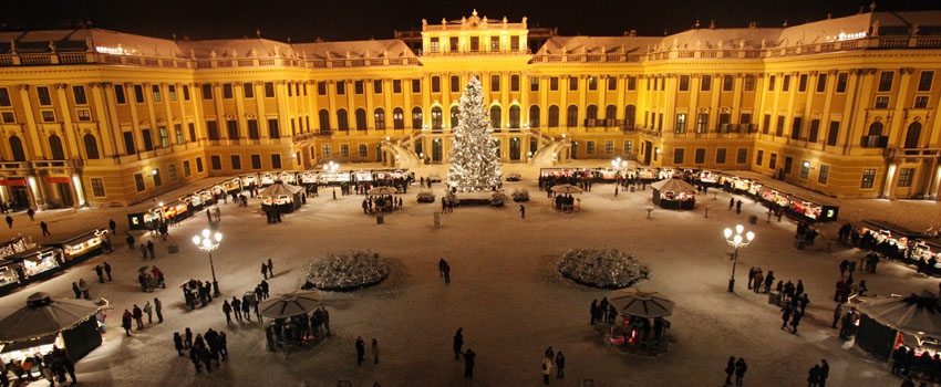 Félúton rövid pihenőt tartunk. Várhatóan 10 óra magasságában érjük el a várost. Busszal közelítjük meg az UNESCO világörökségi címmel kitüntetett, hatalmas méretekkel rendelkező Schönbrunni-kastélyt, amely a Habsburg császári udvar nyári rezidenciájaként szolgált évszázadokon át. Mielőtt belülről is megtekintenénk a kastélyt, mindenkinek lehetősége felfedezni a Schönbrunni karácsonyi vásár finomságait és különlegességeit. A megbeszélt időpontban és helyen találkozik a csoport, hogy az előre leszervezett időpontban minimális várakozást követően fedezhesse fel mindenki saját tempója, érdeklődése és kényelme szerint a fantasztikus császári termeket. A kastélytúrához audioguide-t biztosítunk, így ha szeretnénk, akár vissza is hallgathatjuk az általunk érdekesebbnek vélt információkat, vagy akár lépdeltethetjük a nekünk kevésbé érdekfeszítő részeket. A bejelentett túránk keretében a kastély összes látogatható terme megtekinthető. A kastély lenyűgöző méreteiről árulkodik az is, hogy a Schönbrunni-kastély 1441 terméből mindösszesen 45-öt látogatunk meg, de az is átlagosan egy órát vesz igénybe. Hatalmas báltermek, gyönyörű festmények, lenyűgöző intarziás bútorok, titkos kabinetszobák fogadnak minket, de megtekinthető Erzsébet királynő toalett szalonja és Ferenc József dolgozószobája is.